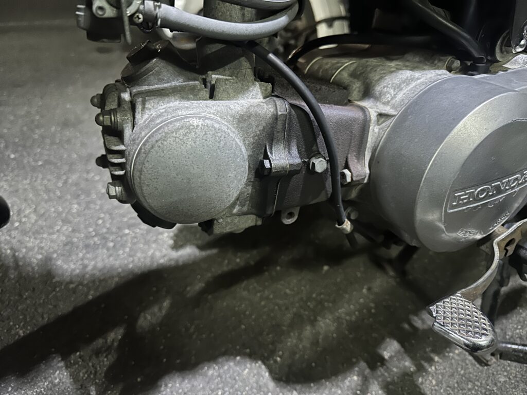 今回私のカブ90でも、アイドリング〜低回転でだけ金属音のような異音が発生。中〜高回転になるとほとんど聞こえないという、いわゆる“カブによくある症状”でした。