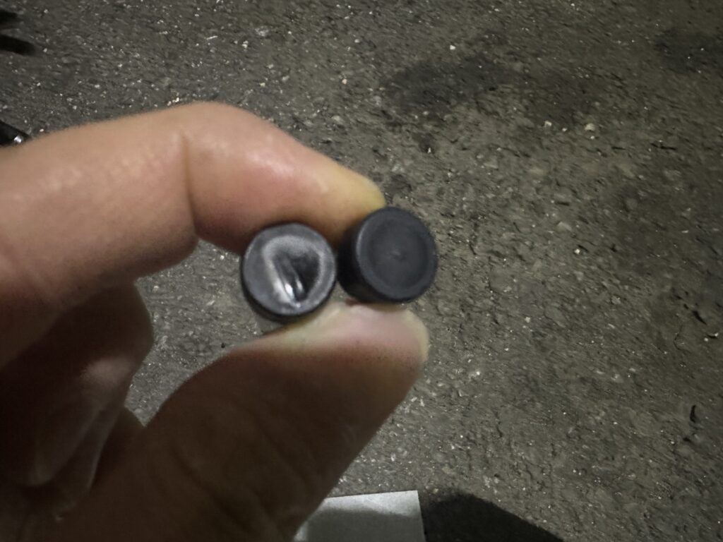 古いものは、あたり面の中央が凹んでいます。ゴムのお疲れの模様です。