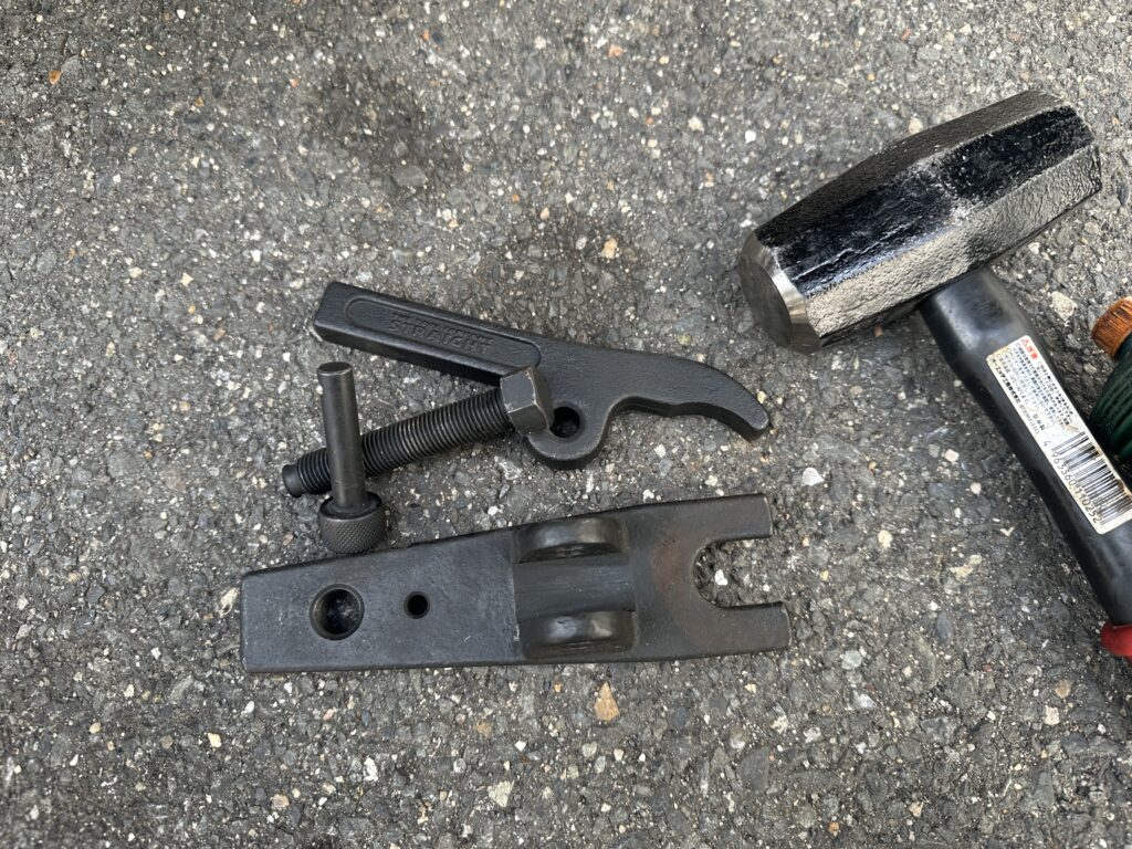 プーラーを挟み込んで、ハンマーで叩きます。今回は、軽く叩いた瞬間に、ガコッと外れました。
