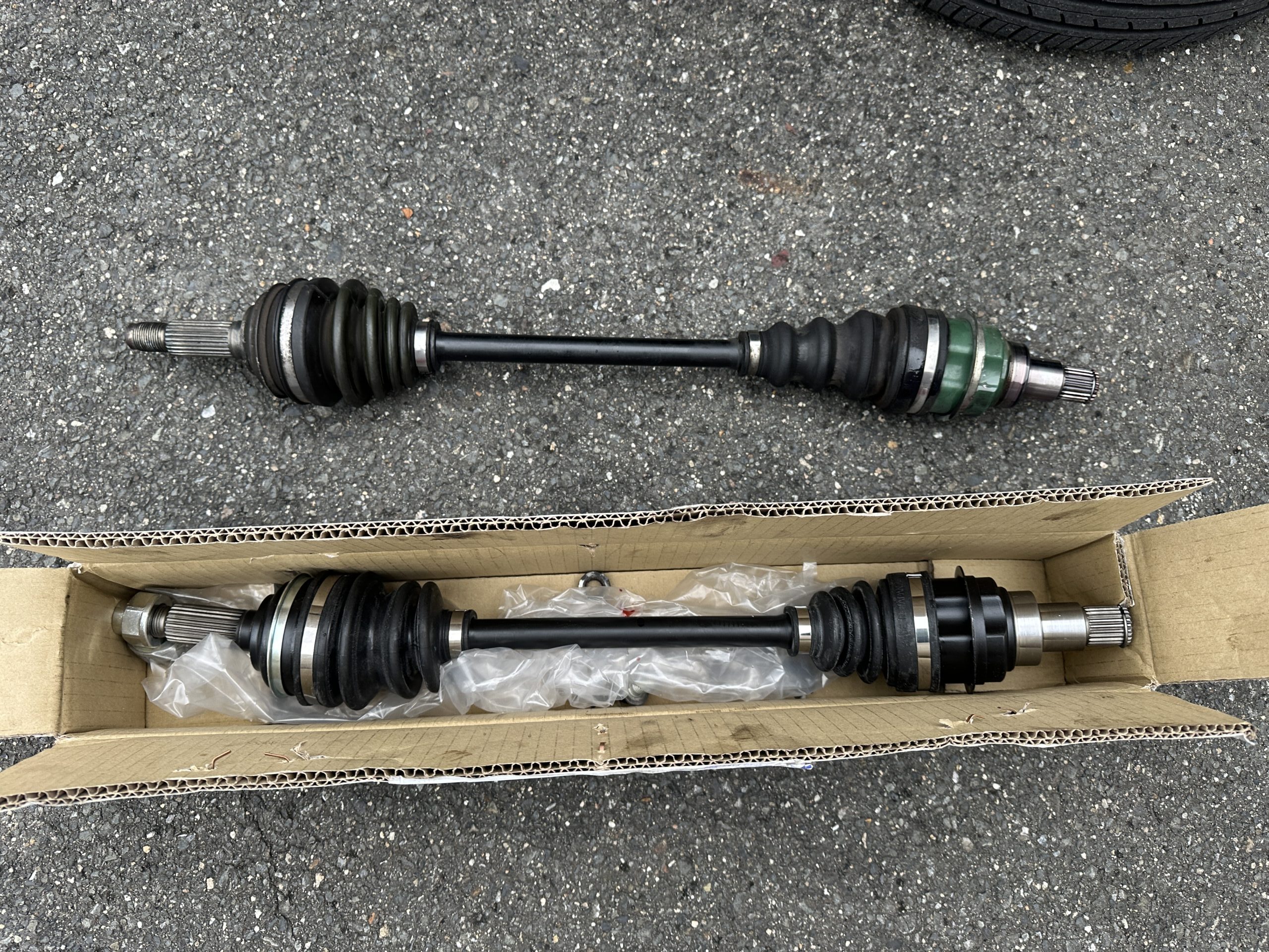 見てわかるように、付け根からはCVTのオイルが漏れています。(受け皿を用意しておきましょう)