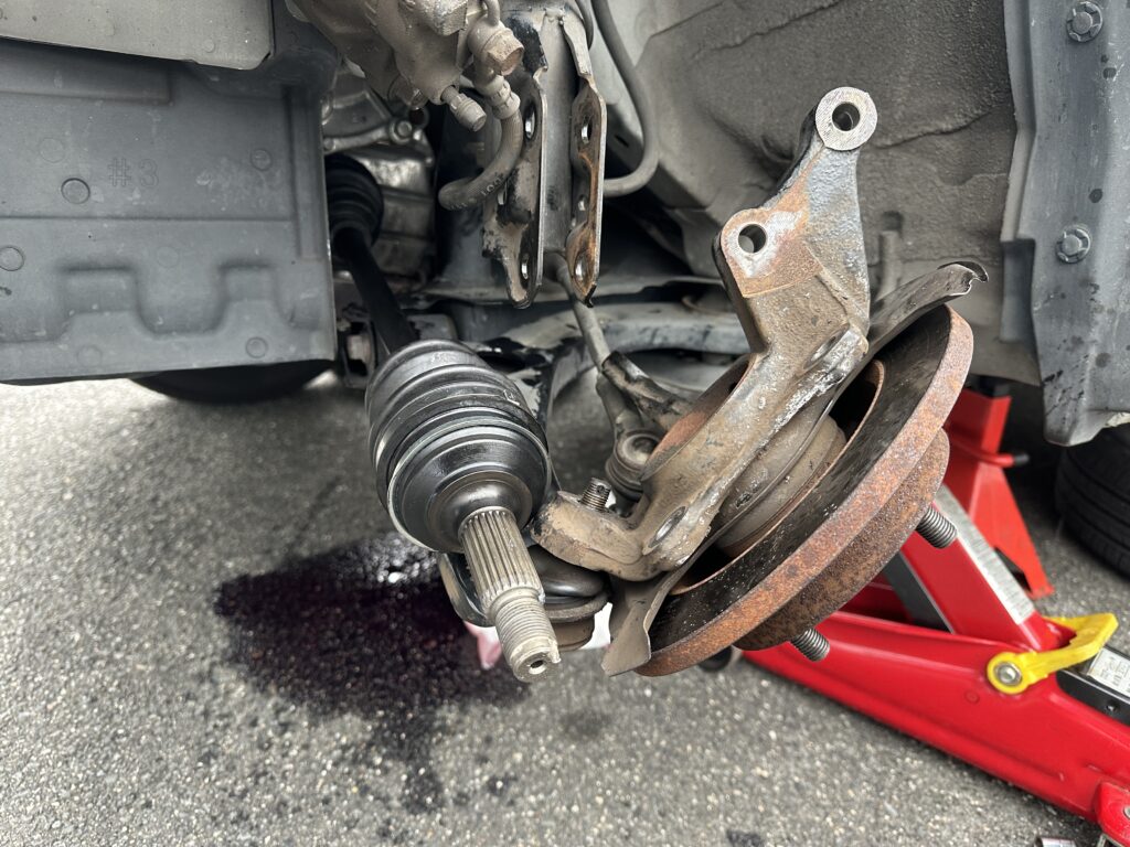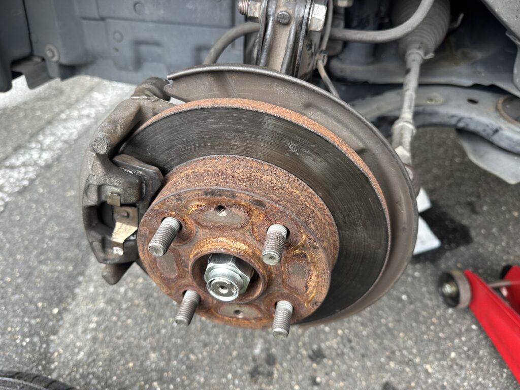 タイヤを外すと、ハブ・ナックルまわりが見えるようになります。