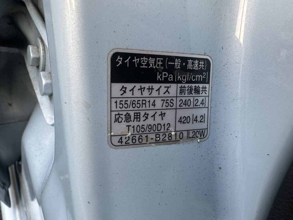 ミラココアの空気圧は「2.4kgf/cm²」が基本。