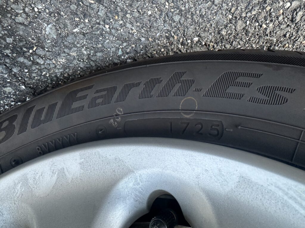 写真のタイヤは「1725」です。これは、下2桁の25が2025年を表しています。