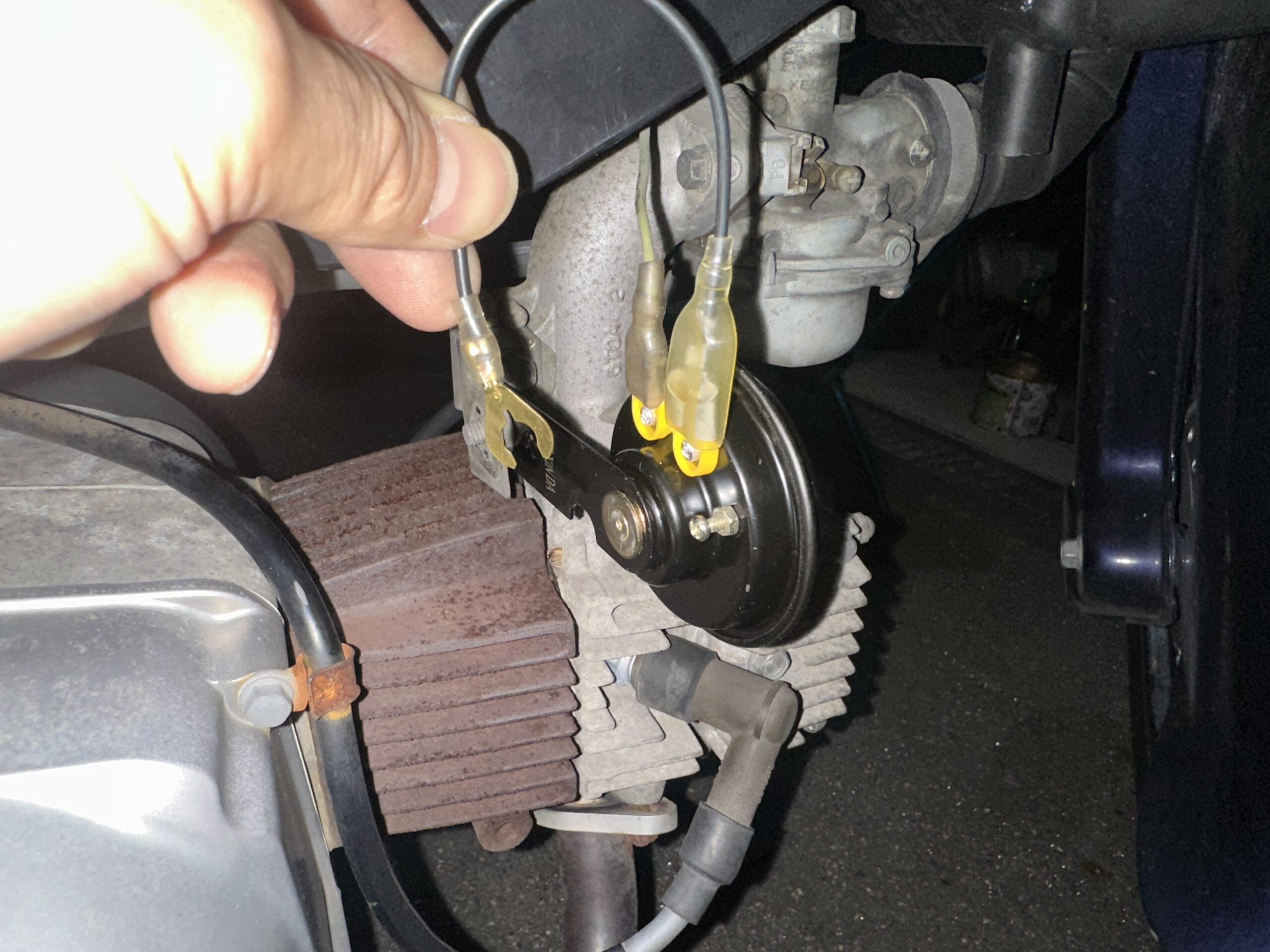 カブの純正配線は+線のみのため、新たにアース配線を追加する必要があります。