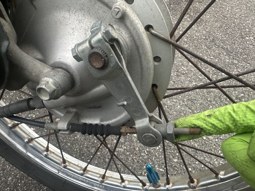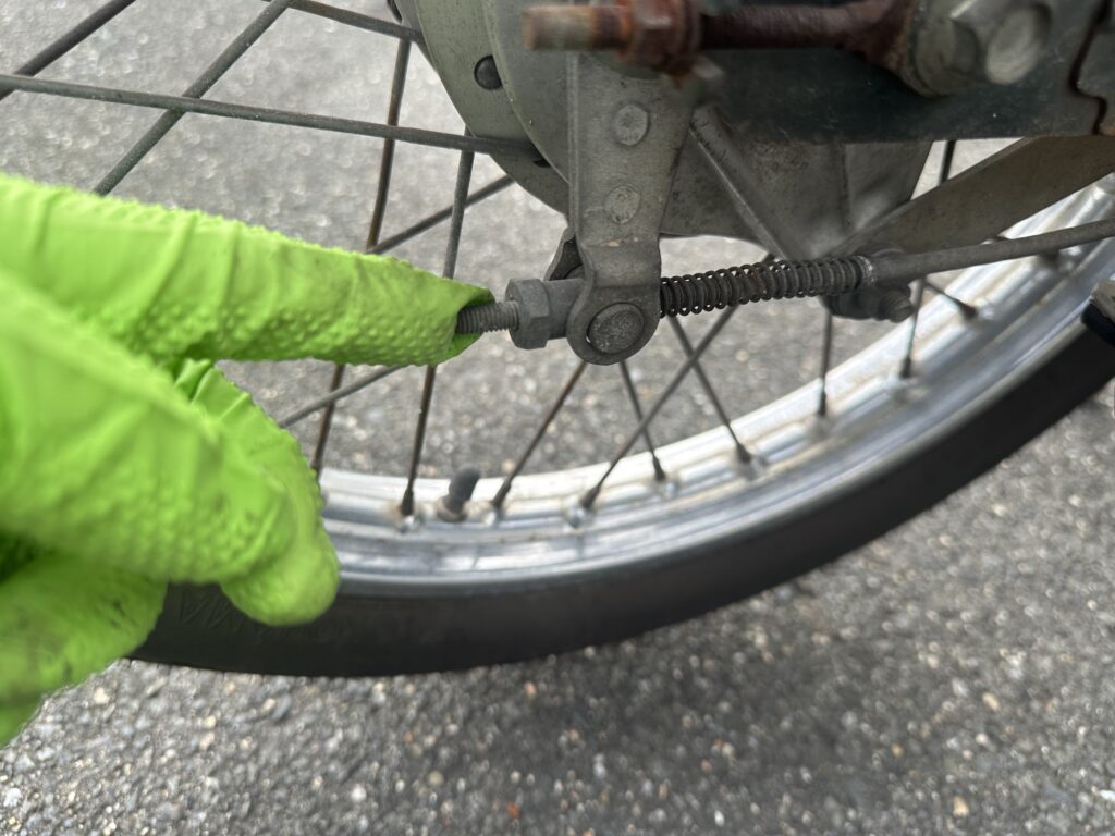 前後ブレーキの遊び量と効きを確認します。ブレーキシューが減っていたら交換しましょう。