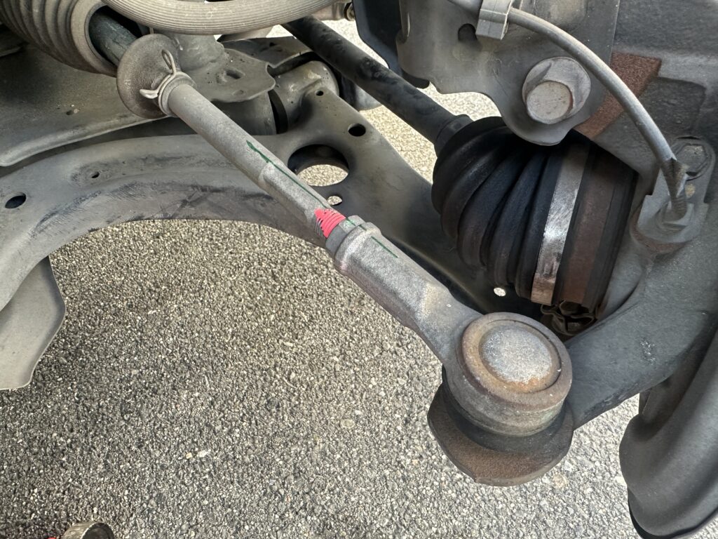 よくあるのは、タイロットエンドのナットを緩め、ナックルから分離していますが、今回はナックル側を取り外さず、タイロット側を取り外してやりました。